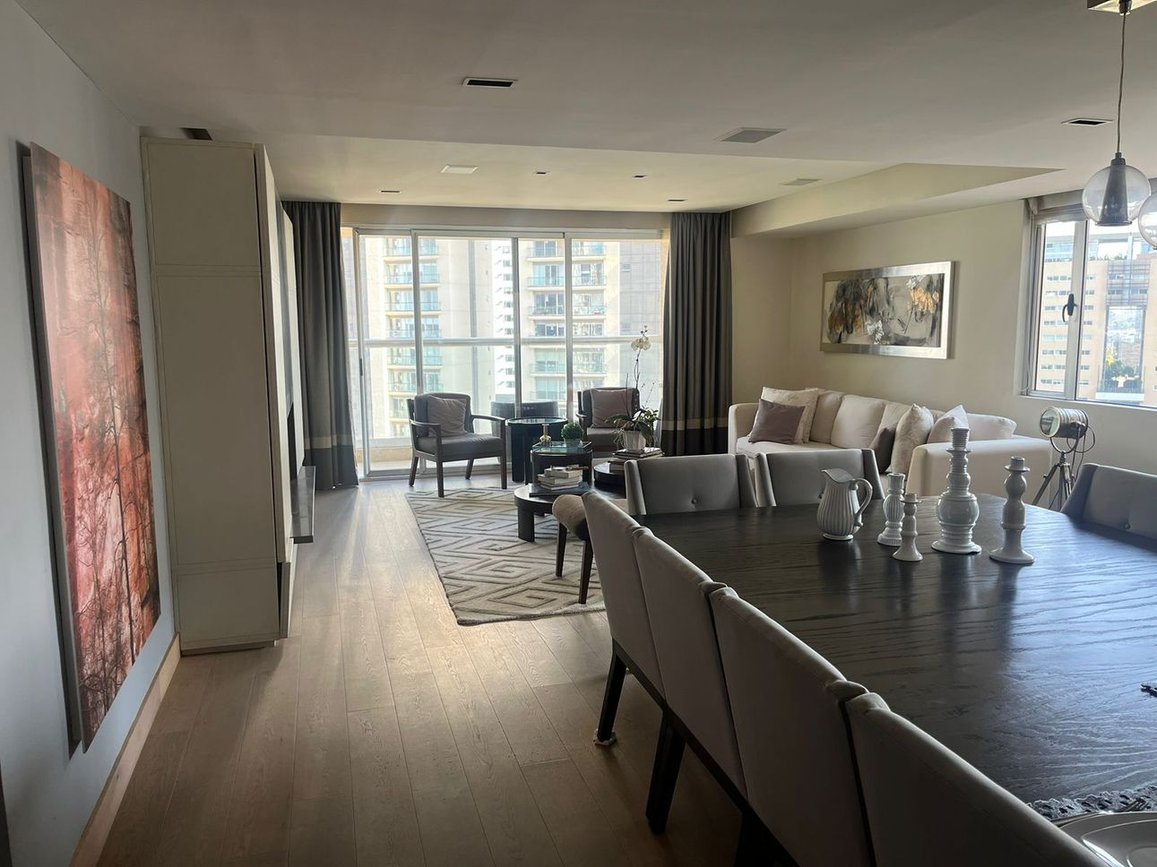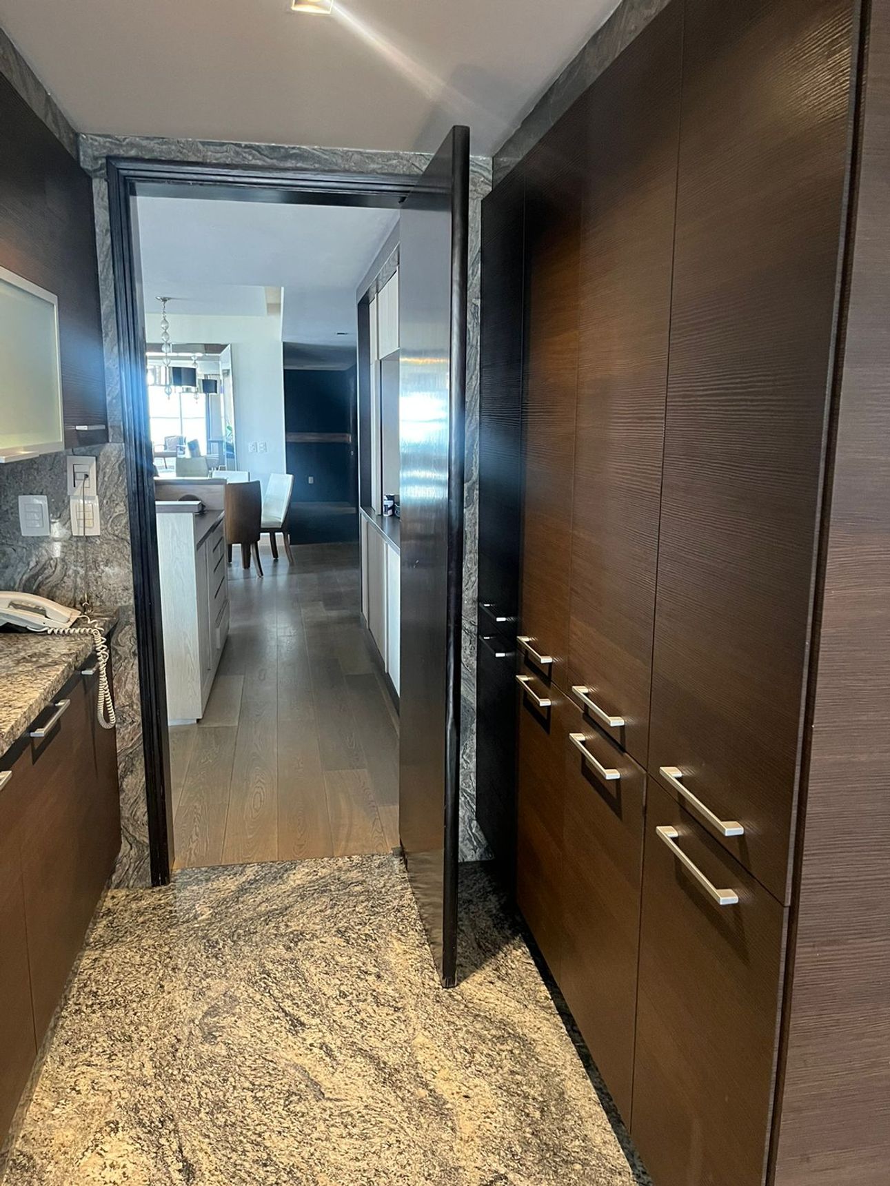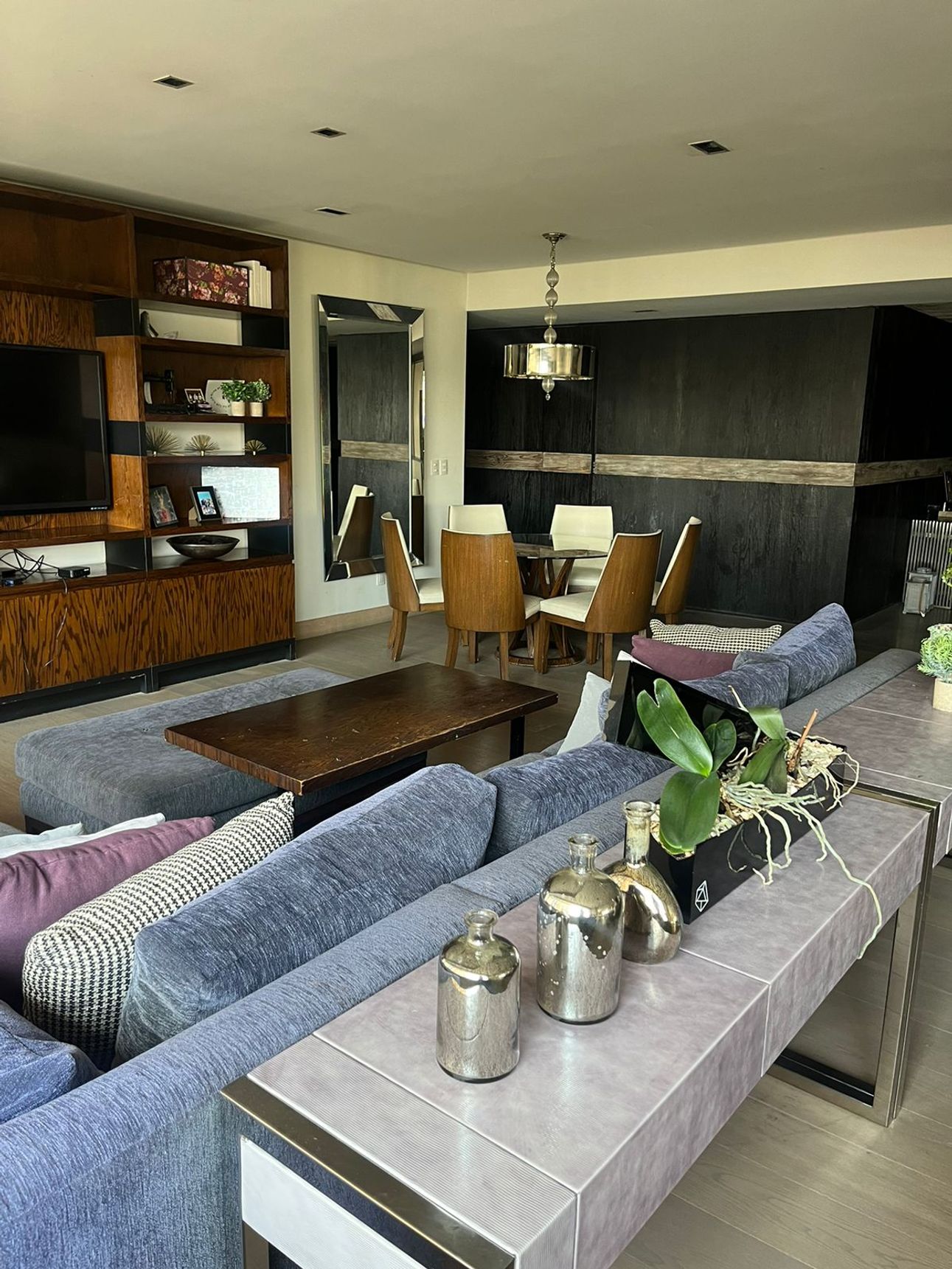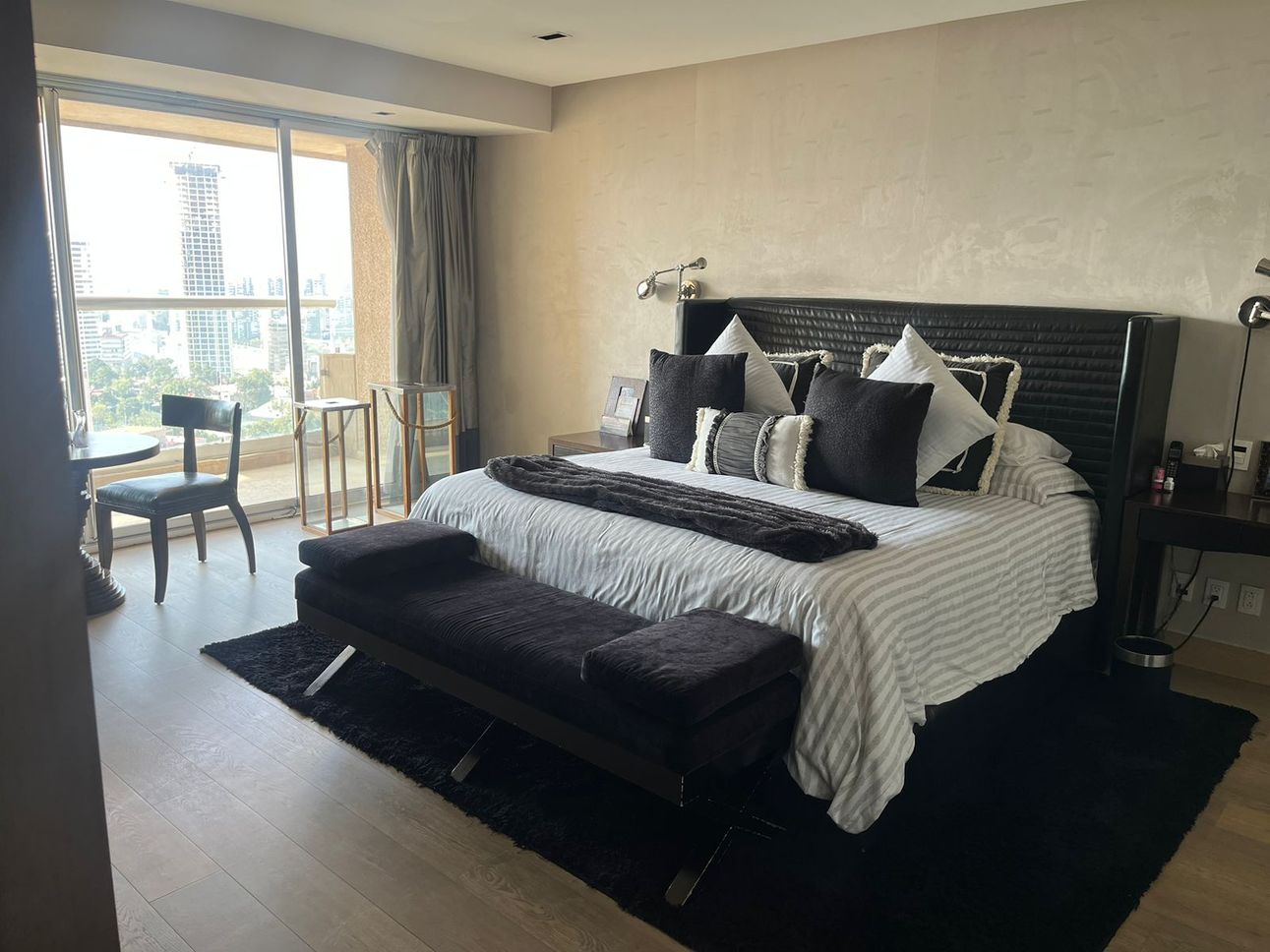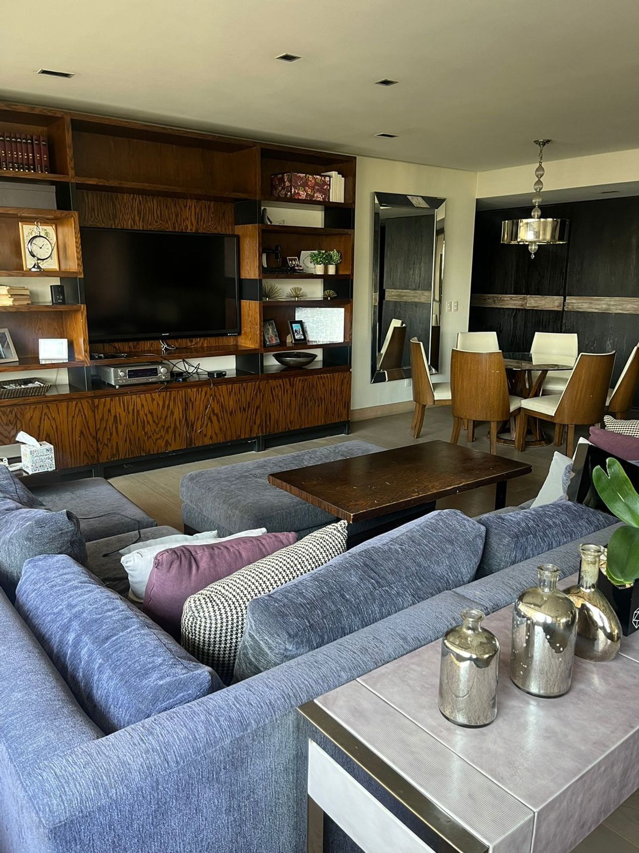 El departamento cuenta con 3 amplias recamaras, la principal con baño y doble vestier, con tina, las otras 2 recamaras con vestier y baño, una gran sala comedor, cocina cerrada con isla de granito y antecomedor, cuarto de lavado, cuarto de servicio, family rom, bodega, 2 balcones4 lugares de estacionamiento.