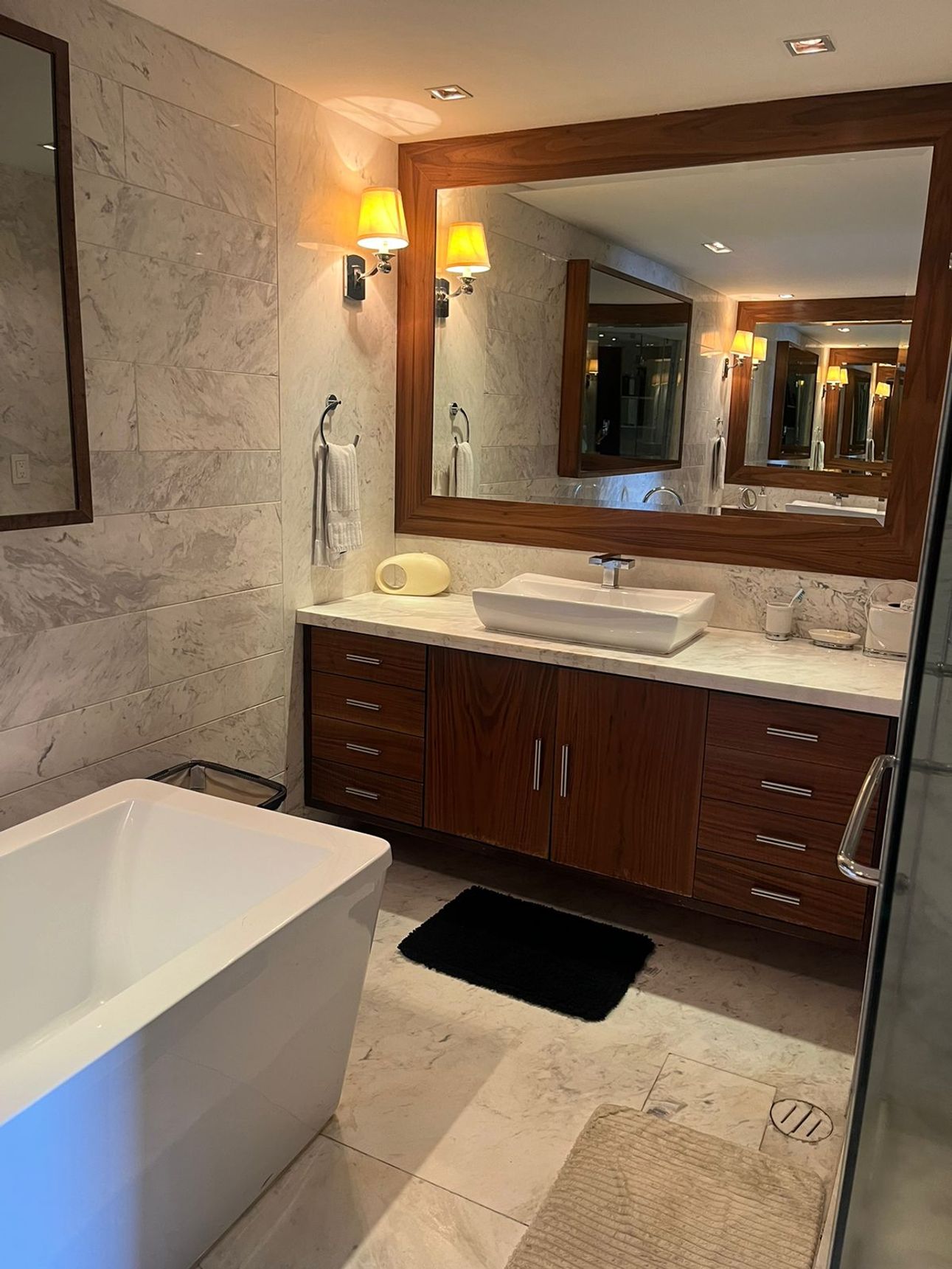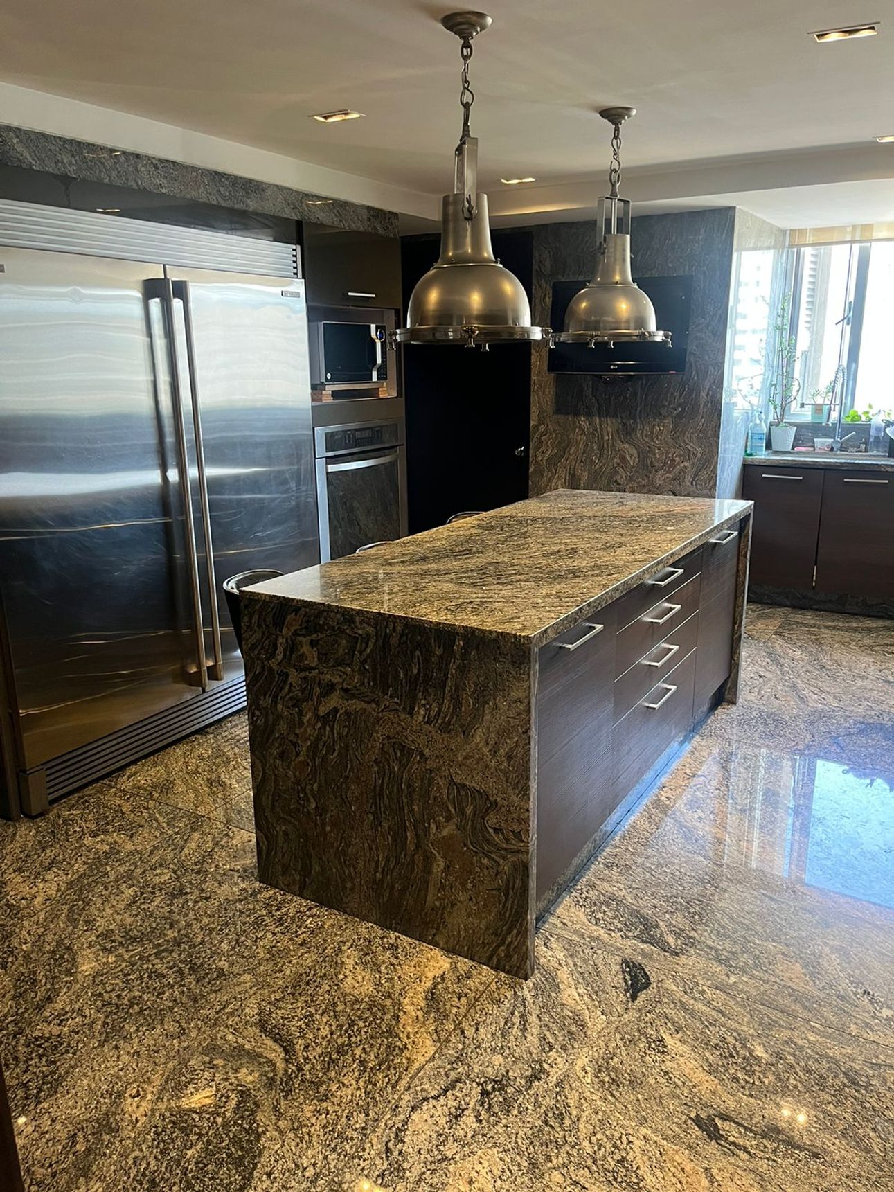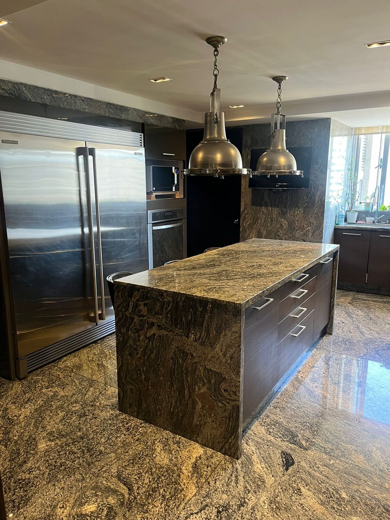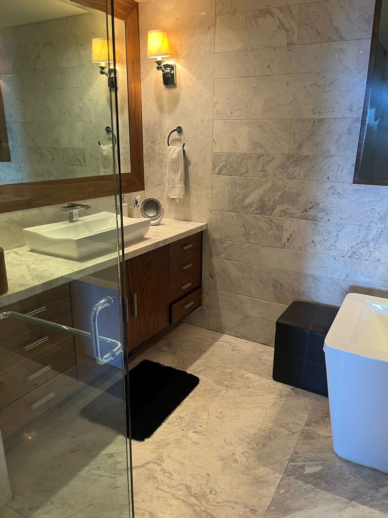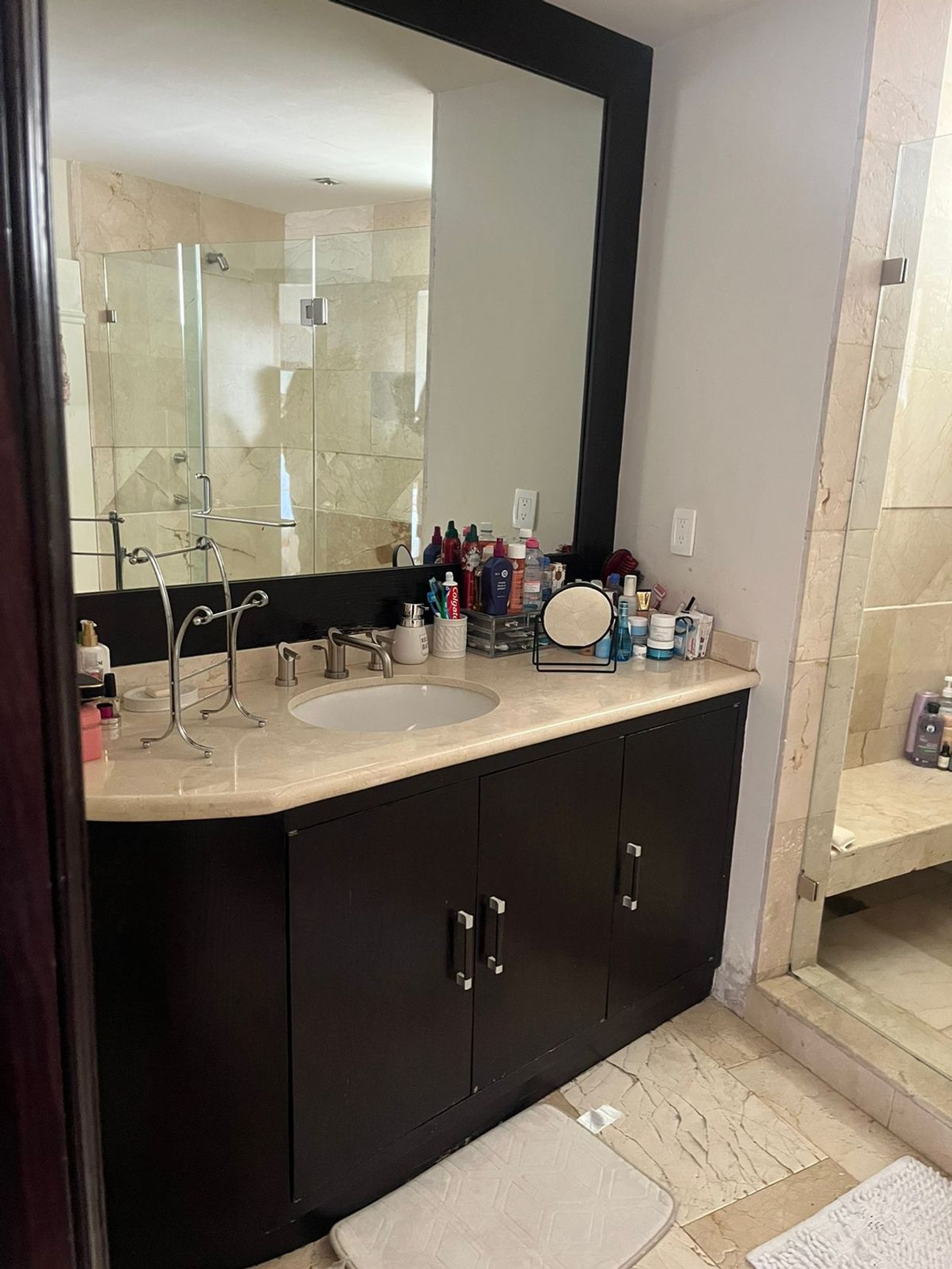 El departamento cuenta con 3 amplias recamaras, la principal con baño y doble vestier, con tina, las otras 2 recamaras con vestier y baño, una gran sala comedor, cocina cerrada con isla de granito y antecomedor, cuarto de lavado, cuarto de servicio, family rom, bodega, 2 balcones4 lugares de estacionamiento.