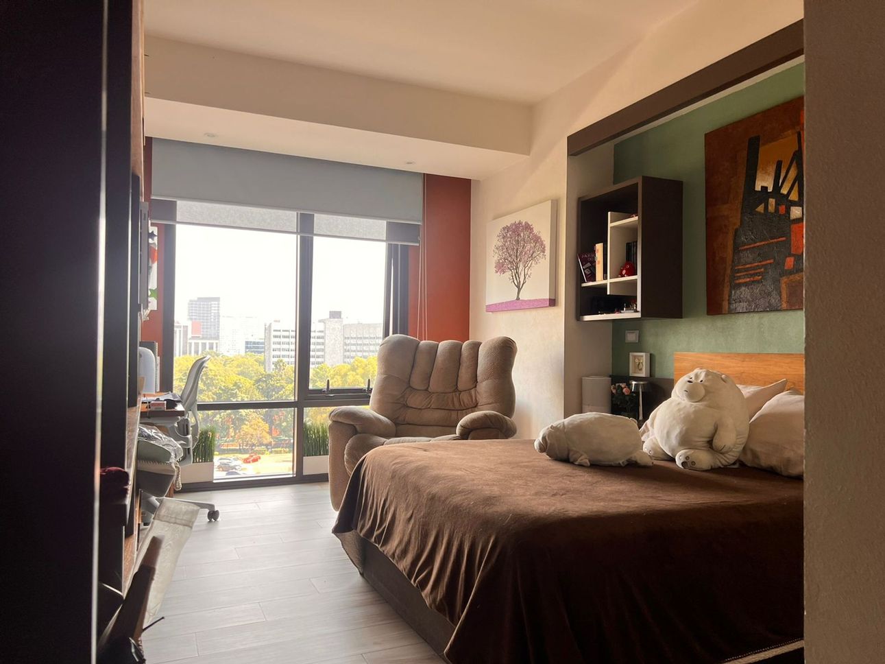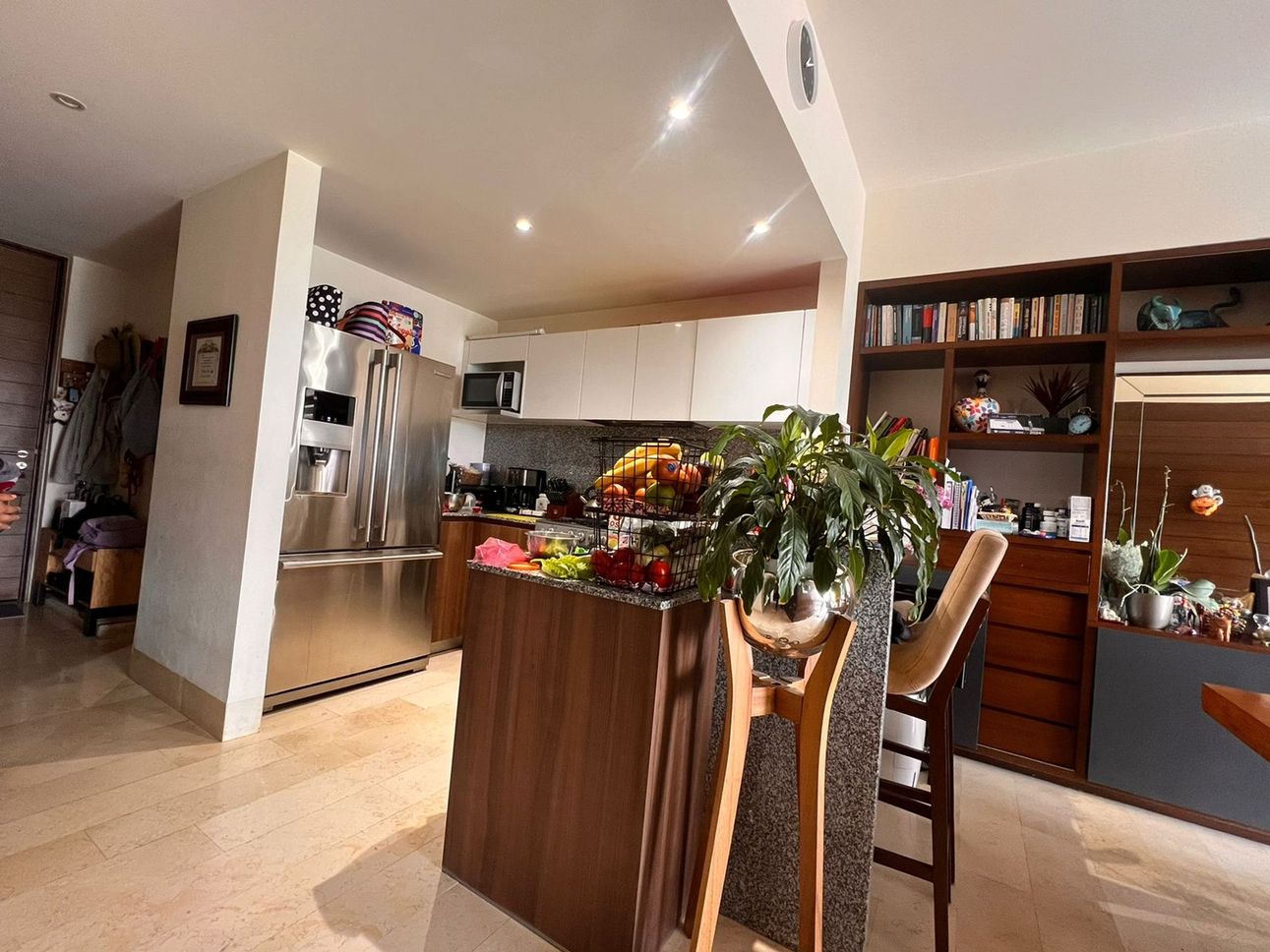 Consta de 2 recamaras cada una con su baño, la principal con vestier, sala comedor con cocina abierta, zona de lavado y medio baño de visitas, vistas hacia el hospital español lo que hace una vivienda muy tranquila e iluminada.