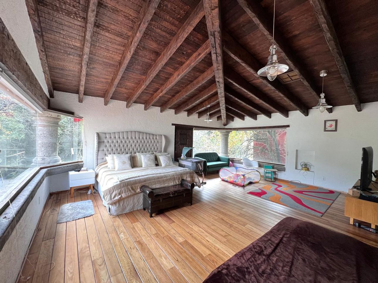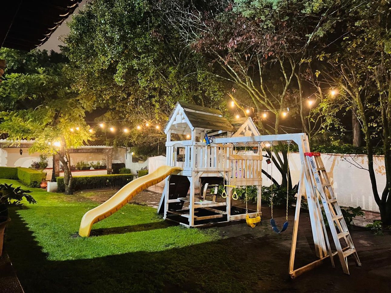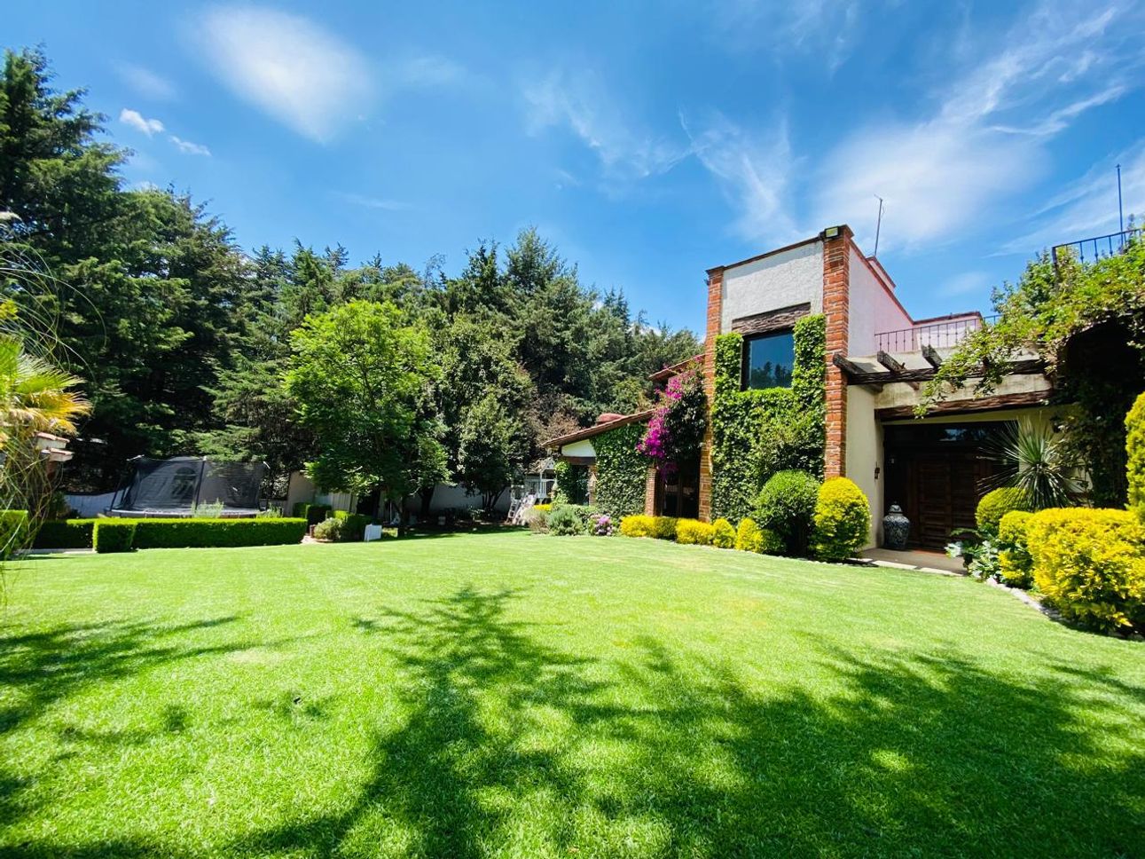 El jardín es ideal para pasar tardes relajadas y conectar con la naturaleza. Para los más pequeños, hay una zona de juegos infantiles donde podrán divertirse a gusto. Además, cuenta con un cuarto y baño de servicio, así como un área de lavado para mayor comodidad.