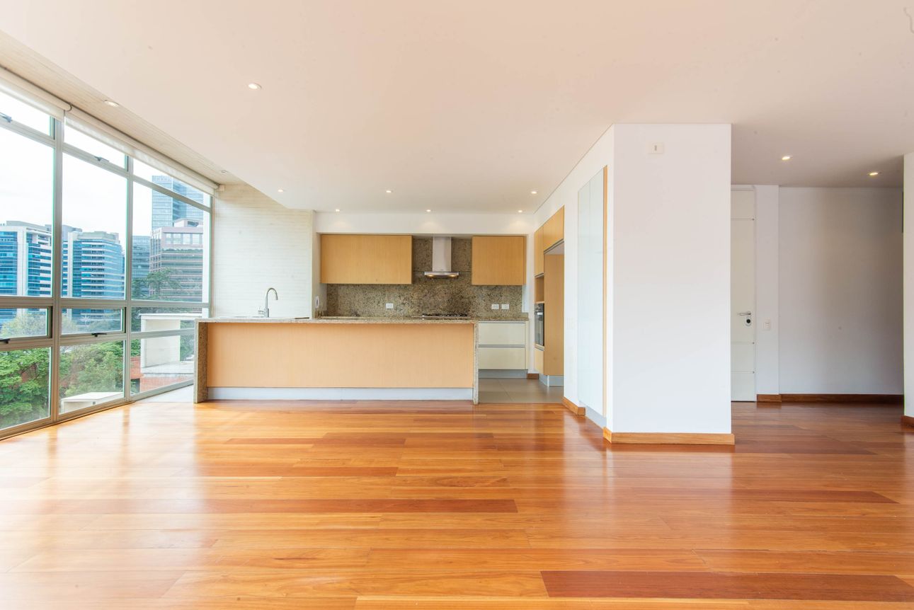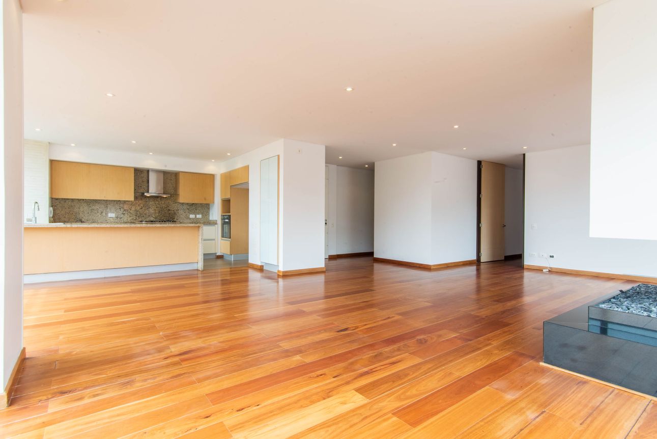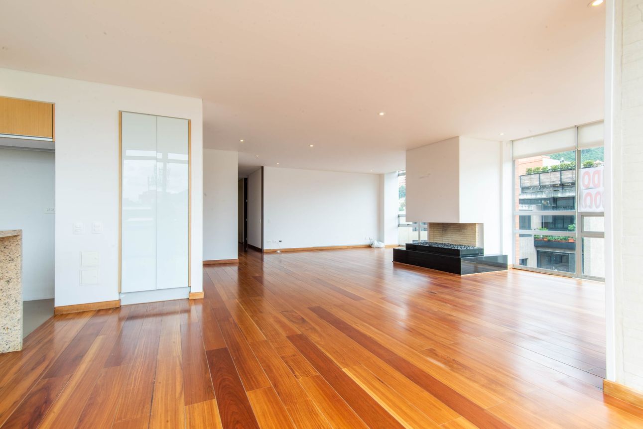 El apartamento cuenta con una amplia zona social con un concepto moderno de áreas abiertas para integrar sala, comedor y cocina en superficies abiertas, espectacular vista a las montañas, chimenea a gas y baño social, zona de lavandería y cuarto y baño del servicio. La zona privada independiente, cuenta con dos habitaciones secundarias con armarios, ambas con baño y la alcoba principal con walk-in closet y baño en suite. Dos garajes independientes y un depósito complementan esta propiedad. Un exclusivo lugar para vivir!