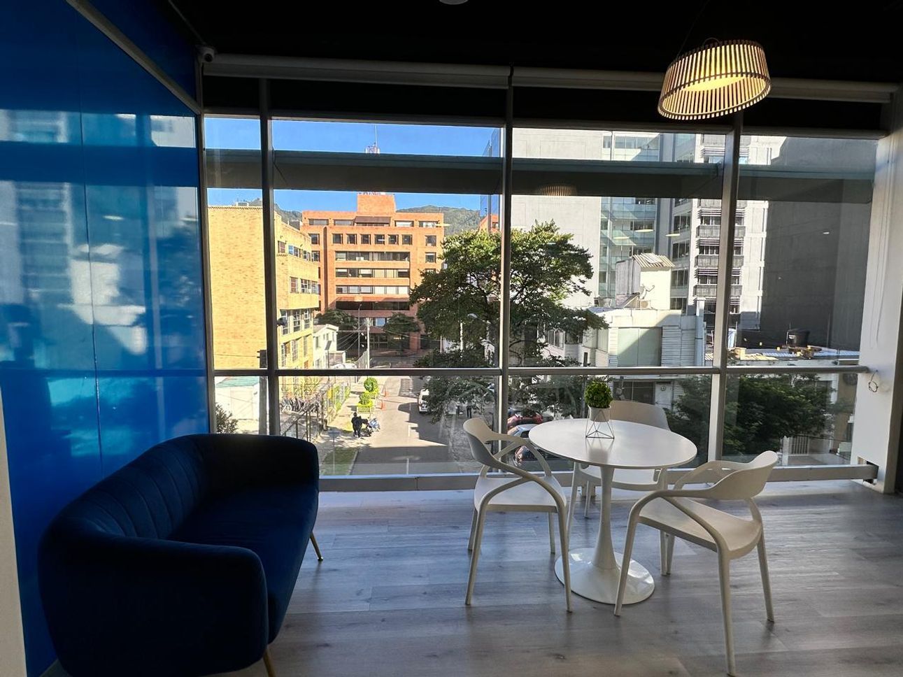 Ubicada en el dinámico sector de Chapinero, Bogotá, ofrecemos en arriendo una oficina totalmente amoblada que se adapta a tus necesidades profesionales. Al ingresar, te encontrarás con una elegante recepción que da paso a un amplio espacio de trabajo. Para mayor privacidad, también cuenta con una oficina independiente, sala de juntas, cocineta y dos baños internos, además de baños adicionales en el área común.